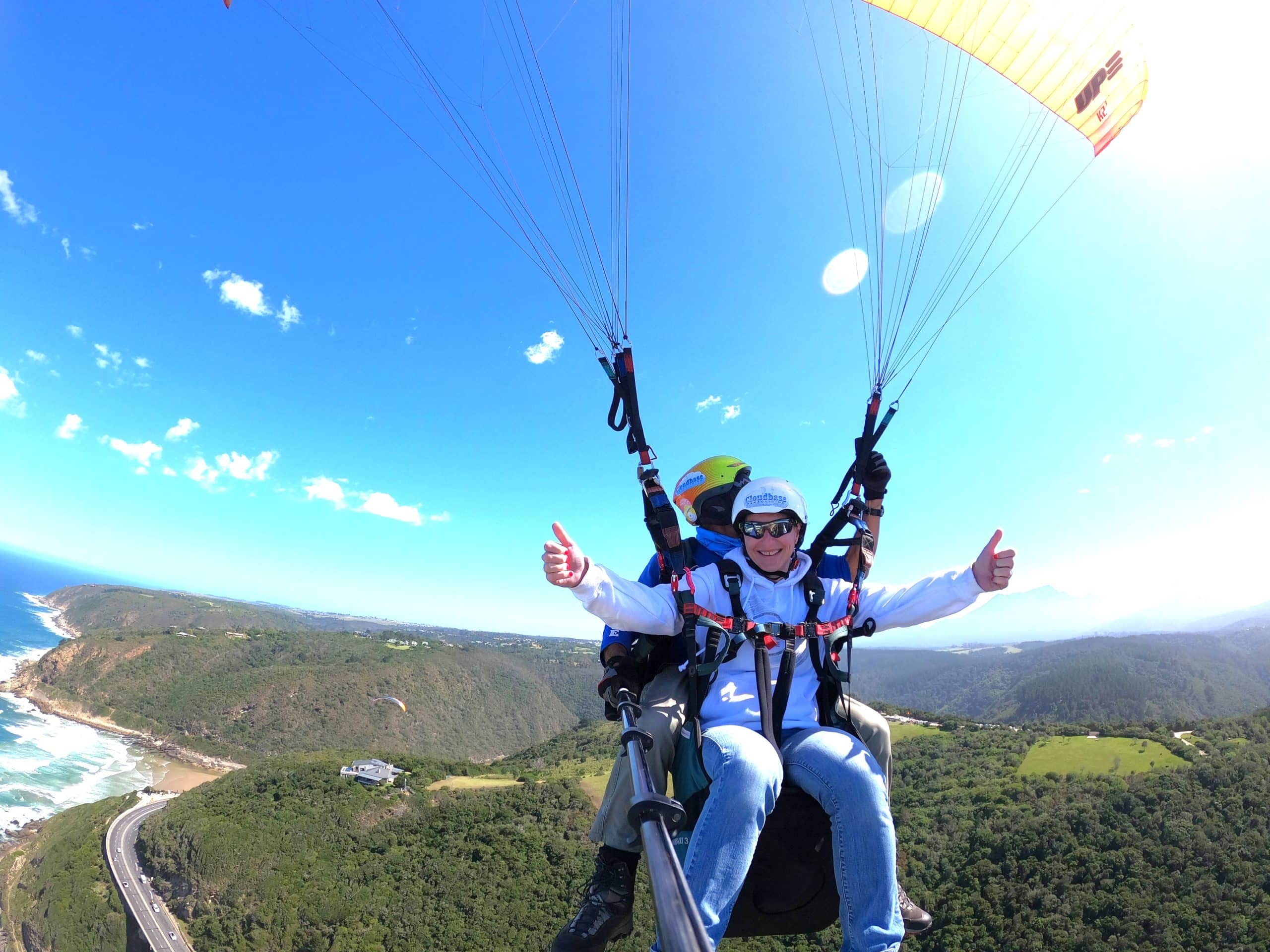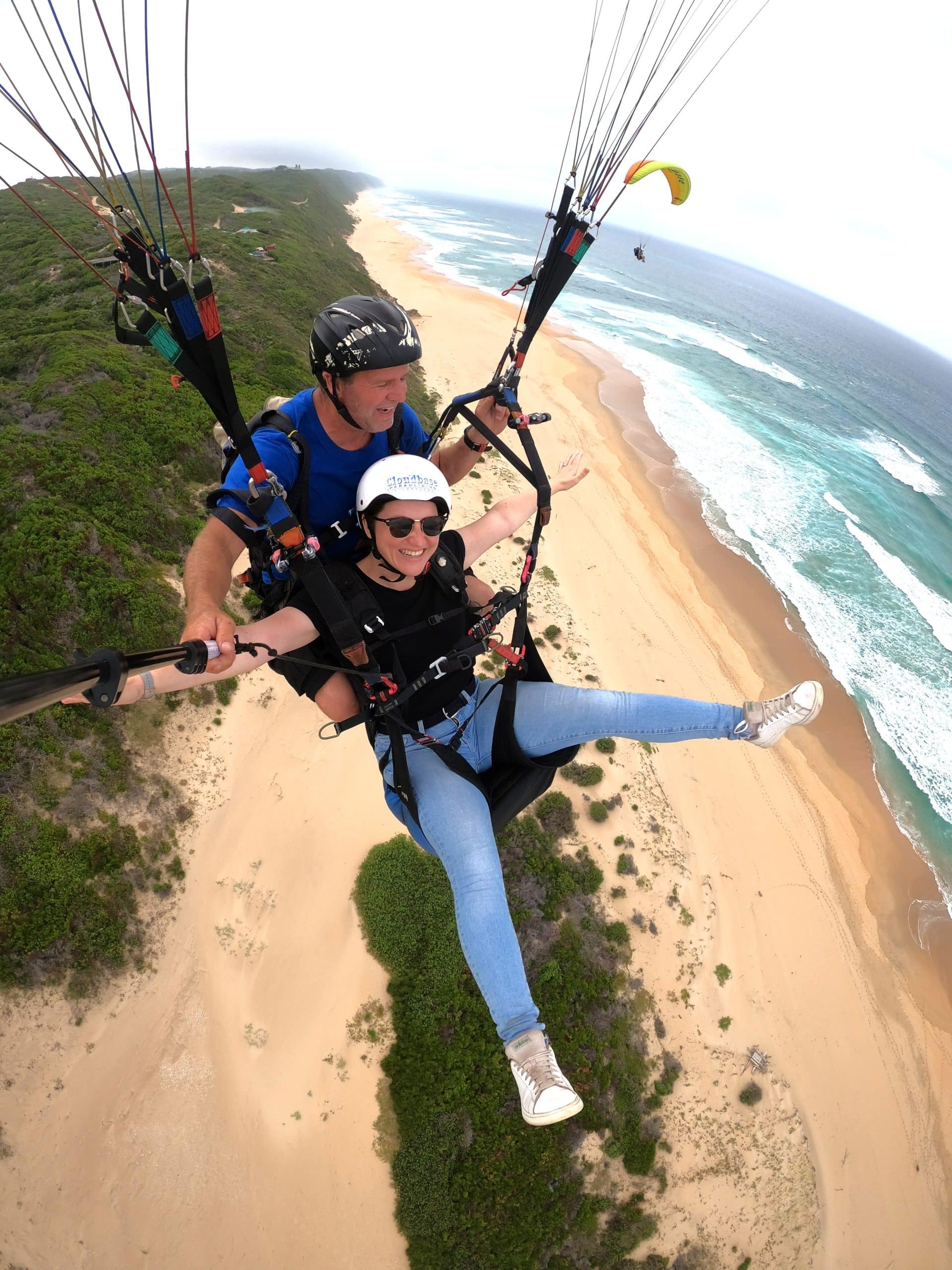 Enjoy the thrill of our Tandem Flights as a passenger on any good weather day. We fly tandems at Mossel Bay, Wilderness, Sedgefield, Brenton, Knysna and Plettenberg Bay – the location will depend on the day’s wind speed and direction and we contact you on the morning of your booking to confirm where we will be flying. As we are weather dependent it is better not to leave your booking until the last day of your holiday to ensure a bigger window of opportunity.