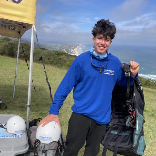 Katryn is a young, vivacious addition to the Cloudbase team, bursting with genuine passion for paragliding and adventure. She’s thrilled to be right here on the hill with us, soaking up every moment of the flying life.